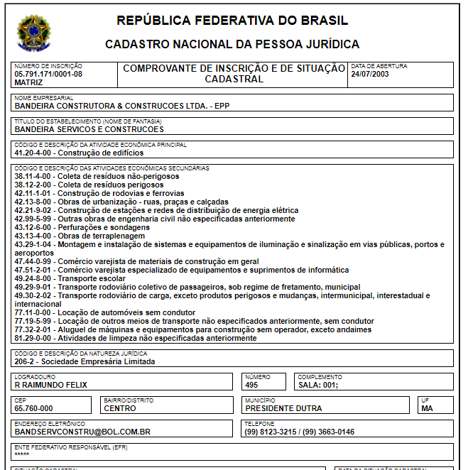 O contrato milionário foi firmado com a Bandeira Construtora e Construções, localizada em Presidente Dutra.