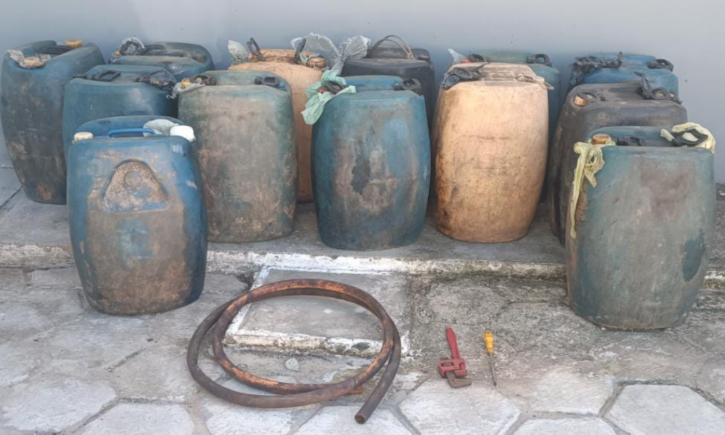 Aproveitando-se da parada do trem, o autor conseguiu acesso ao tanque de combustível da locomotiva de onde subtraiu 13 galões contendo o total de 750 (setecentos e cinquenta) litros de combustível. Durante o ato criminoso, o autuado foi interceptado pelas equipes policiais, momento em que foi dada voz de prisão em flagrante com a subsequente condução para a Delegacia de Polícia e apreensão do material subtraído.