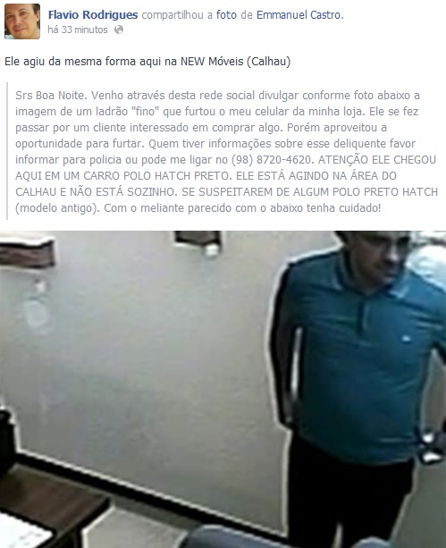 Circula nas redes sociais a imagem de um homem – identificado apenas como Carlos – que estaria se passando por cliente para praticar pequenos furtos em lojas na Avenida dos Holandeses, no Calhau, área nobre de São Luís.