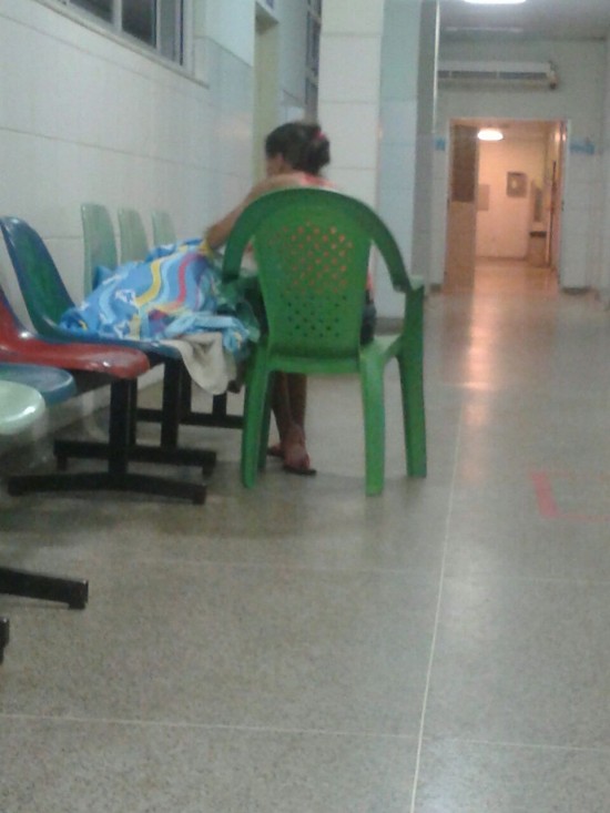 O registro de abandono foi feito por um leitor do blog. As imagens mostram pessoas sentadas no corredor, sem nenhum conforto, com crianças sendo medicada no colo.