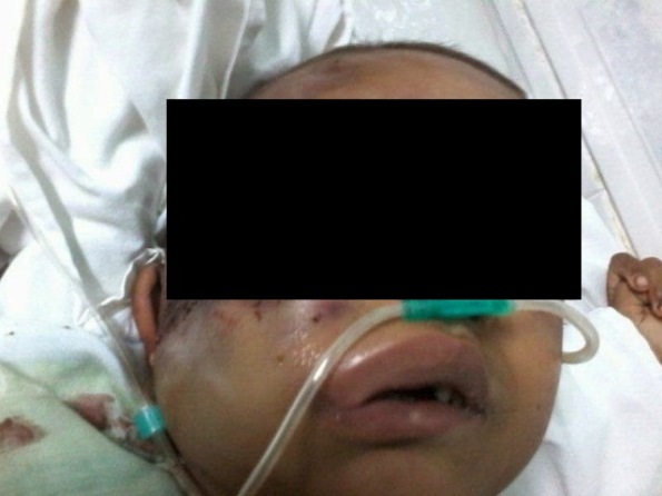 Um menino de apenas cinco anos de idade teve o rosto deformado depois de ser covardemente espancando pelos pais.