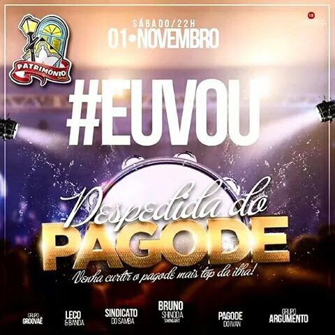 Imperdível! Festa no Patrimônio Show promete agitar São Luís 31/10/2014 | PÁGINA PRINCIPAL, Notícias A cidade de São Luís já tem fervo garantido no dia 01 de novembro: a festa #Euvou. Entre as atrações, destaque para o show das bandas Sindicato do Samba, Argumento, Pagode do Ivan e Bruno Shinoda e Swingart SlZ. Navegação de Post Flávio anuncio Felipe Camarão na Secretaria de Gestão e PrevidênciaExclusivo: Luis Fernando se encontra com Flávio Dino