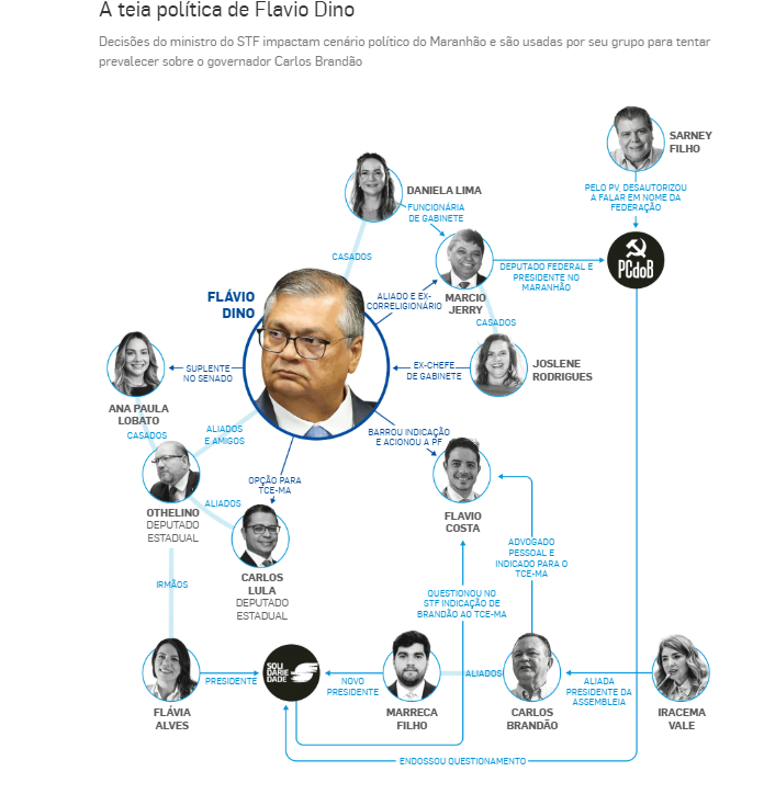 A disputa no Maranhão está concentrada em torno do grupo de Brandão e do grupo dos aliados do ministro, representados principalmente pelo deputado estadual Othelino Neto (ex-PCdoB, hoje no Solidariedade), presidente da Assembleia Legislativa nos dois governos Dino e marido da senadora Ana Paula Lobato (ex-PDT, hoje PSB).