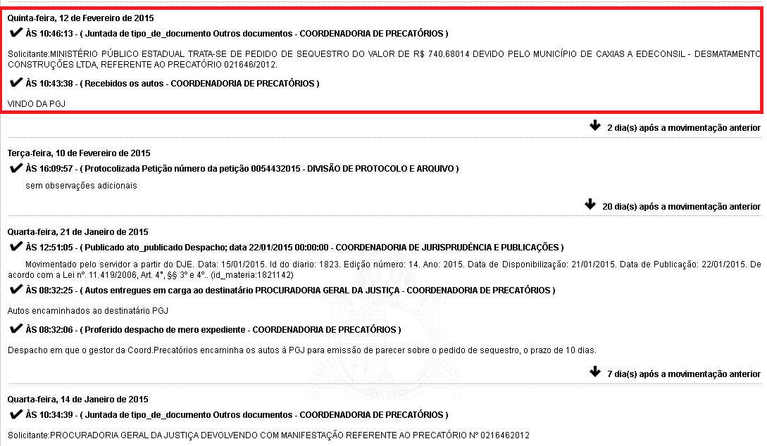 As duas decisões, para que fosse efetuado o pagamento, foram dadas em fevereiro de 2015 e 28 de abril de 2017. Sendo que a primeira foi no valor de R$ 740.680,14 mil e a segunda no montante de R$ 1.132.392,30 milhão.