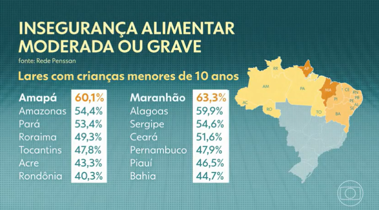 Os números apontam que mais de 63% dos lares maranhenses com crianças menores de 10 anos de idade enfrentam a insegurança alimentar, ou seja, quando não há comida suficiente e as pessoas chegam a passarfome.