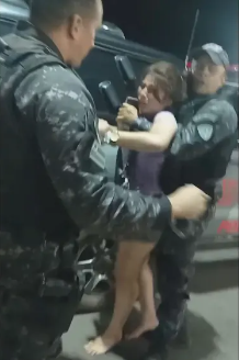 Nathália conta que chegou a pedir ajuda ao outro policial que estava no local, mas não foi atendida. Ela foi atingida com spray de pimenta, desmaiou e quando recobrou a consciência já estava presa. “Eu pedi para o outro policial me ajudar e ele não me ajudou. Ele jogou o spray no meu rosto e como o cheiro era muito forte eu fiquei sem ar e desmaiei. Quando eu acordei eu só vi ele me jogando na viatura e fechando os vidros do carro e nessa hora eu já estava algemada”.