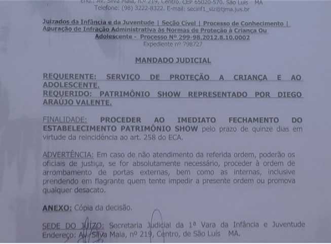 Foi interditada na tarde de ontem,24, uma das casas de sertanejo mais tradicionais de São Luís. A casa noturna Patrimônio Show , foi interditada pela Vara e Juizado da infância.