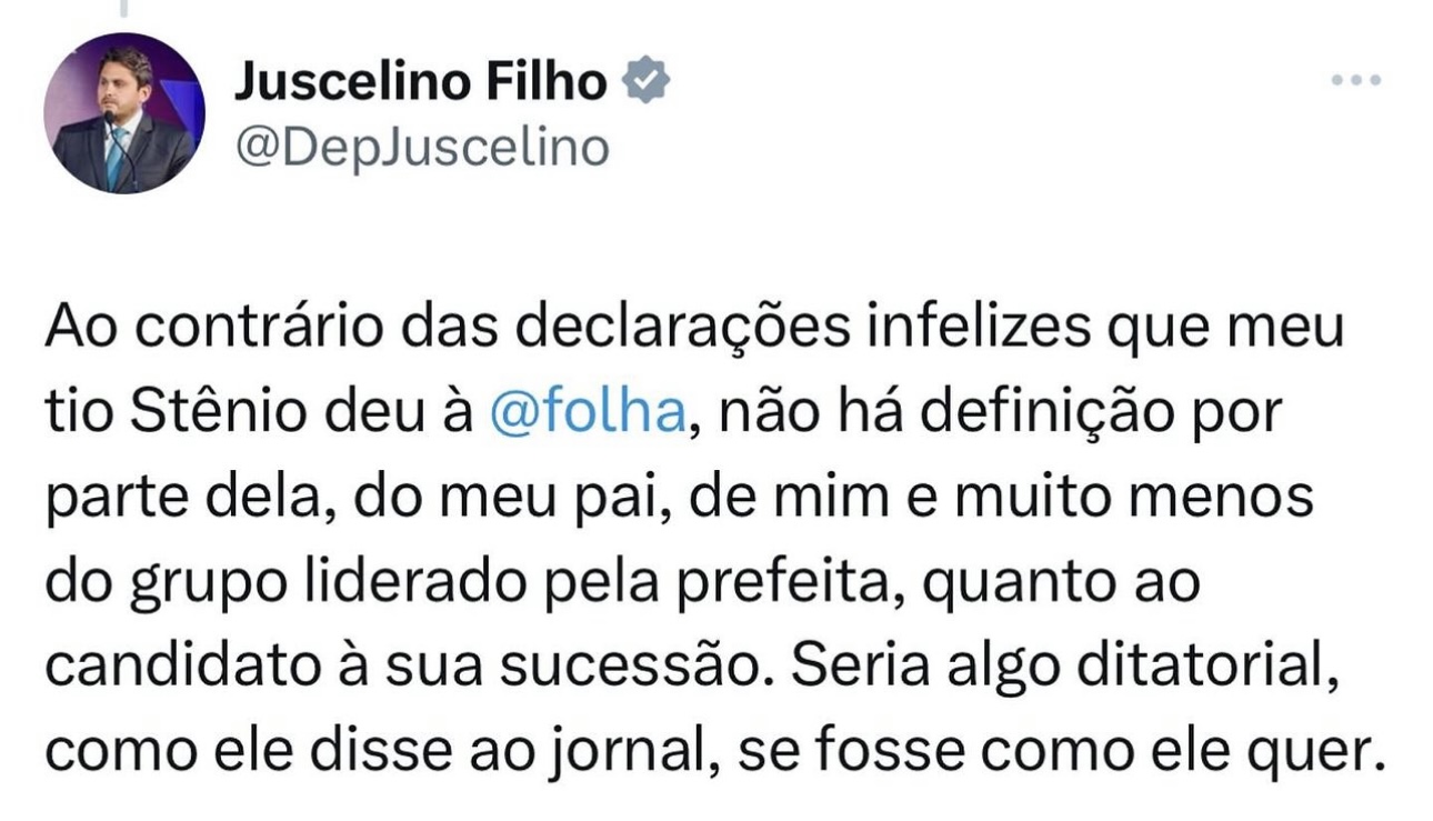 Stenio expressou brevemente sua posição e visão política em relação a Vitorino Freire, o que provocou a indignação de Juscelino Filho, levando-o a publicar várias postagens ofensivas contra seu tio.