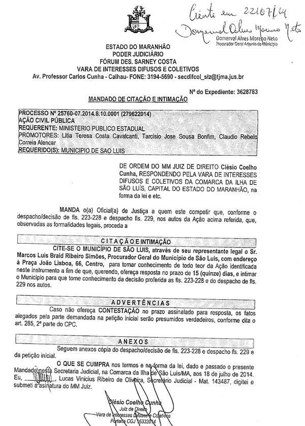 O prefeito de São Luis, Edivaldo Holanda Júnior (PTC), já foi notificado sobre a decisão judicial na qual é obrigado a rever o índice de reajuste das tarifas do transporte coletivo. A informação é da Central de Mandados, que funciona no Fórum Desembargador Sarney Costa e recebeu o mandado devidamente assinado no final da manhã desta quarta (23). Notificada a Prefeitura tem 48 horas para cumprir a decisão. De acordo com a Central de Mandados, houve uma prioridade a essa decisão, em virtude da importância para a comunidade. Da decisão cabe recurso.
