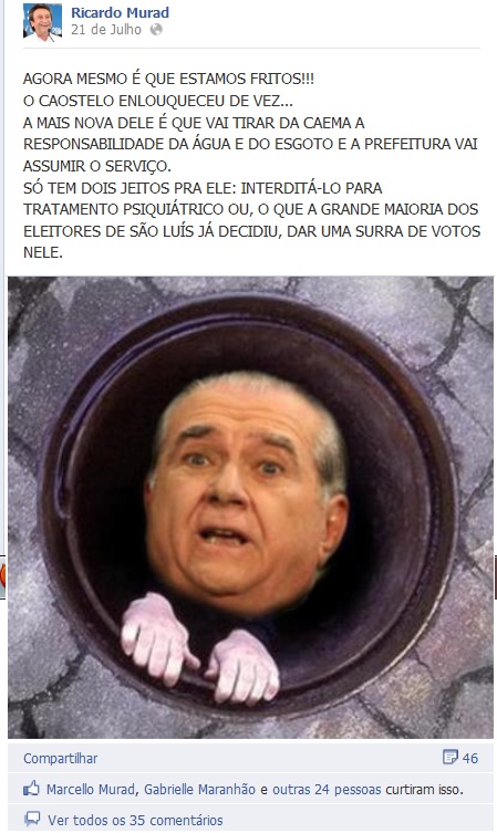 O juiz Jesus Guanaré de Sousa Borges considerou ofensivas referências de Ricardo Murad a João Castelo após o prefeito explicitar sua decisão determinar análise dos termos do contrato de exploração dos serviços de abastecimento de água e coleta de esgoto entre a Caema e a Prefeitura de São Luís. Pelo menos 5.268 pessoas, classificadas como amigas de Ricardo Murad, foram sumariamente informadas do conteúdo de suas postagens ofensivas, além do que, foram reproduzidas por blogs e mídias sociais.