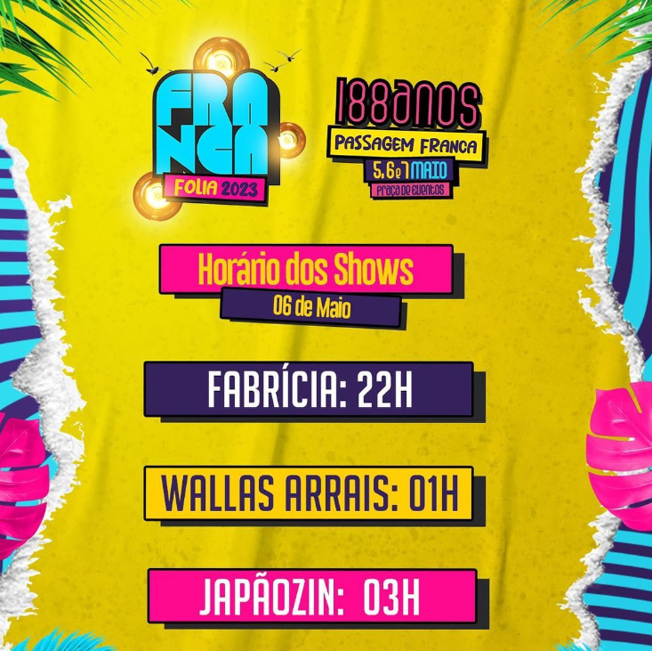 Na decisão, a juíza Veronica Calmon determinou a suspensão dos shows dos artistas Fabrícia, Wallas Arrais e Japãozin, programados para o evento “Franca Folia”, previsto para o período desta sexta-feira a domingo, para celebrar o aniversário de 188 anos do município.