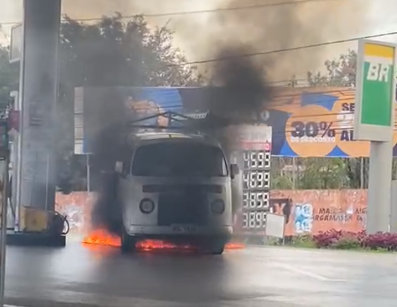 Na manhã desta segunda-feira (4), o pânico se instalou em um posto de combustível após um veículo, modelo Kombi, pegar fogo na avenida São Luís Rei de França, na capital maranhense.