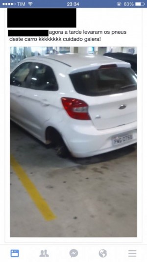 A imagem foi postada em uma rede social e seguidores afirmam que o caso está virando moda entre os bandidos e alertam para os riscos que os condutores correm ao deixar o veículo em estacionamentos, privados ou não. Difícil mesmo é evitar que isso aconteça.
