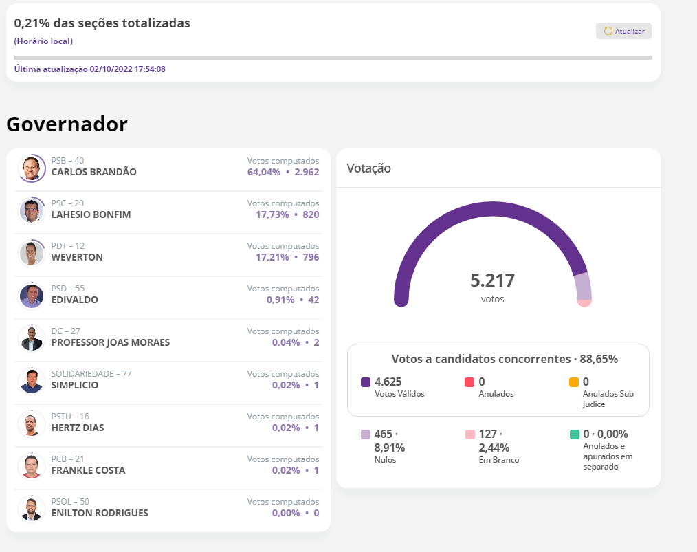 Lahésio passa Weverton e fica no segundo lugar na disputa 02/10/2022 | PÁGINA PRINCIPAL, Notícias Navegação de Post Flávio Dino está liderando para o Senado no MaranhãoBrandão com 56,66% e Lahésio com 23,77%