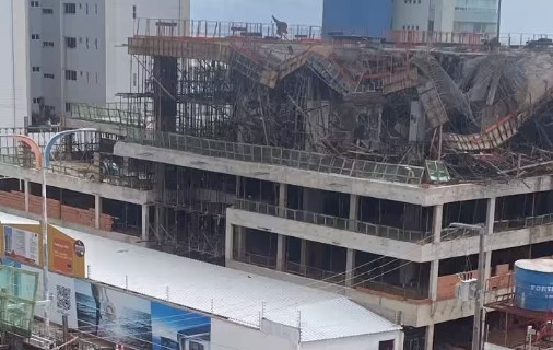 Nesta quinta-feira (9), a laje de um prédio em construção desabou na Península da Ponta d’Areia, em São Luís.