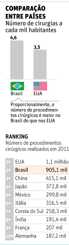 Em quatro anos, o número de cirurgias plásticas no país quase dobrou: passou de 629.287, em 2008, para 905.124, em 2011.