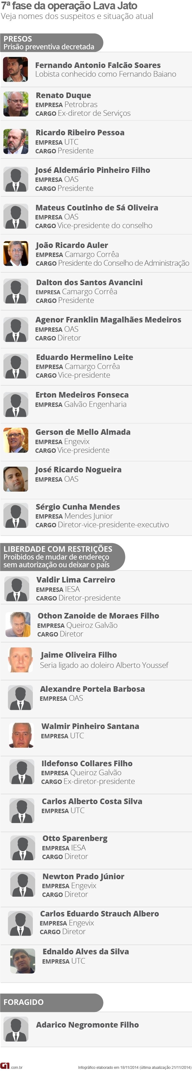 O juiz federal Sergio Moro decretou ontem sexta-feira (21) a prisão preventiva do lobista Fernando Soares, conhecido como Fernando Baiano, que está na carceragem da Polícia Federal em Curitiba. Ele estava em prisão temporária até sábado (22), mas, baseado em parecer do Ministério Público Federal (MPF), a Justiça decretou a prisão por tempo indeterminado. Sobre a prisão de Adarico Negromonte Filho, que está foragido, Moro informou que decidirá posteriormente.
