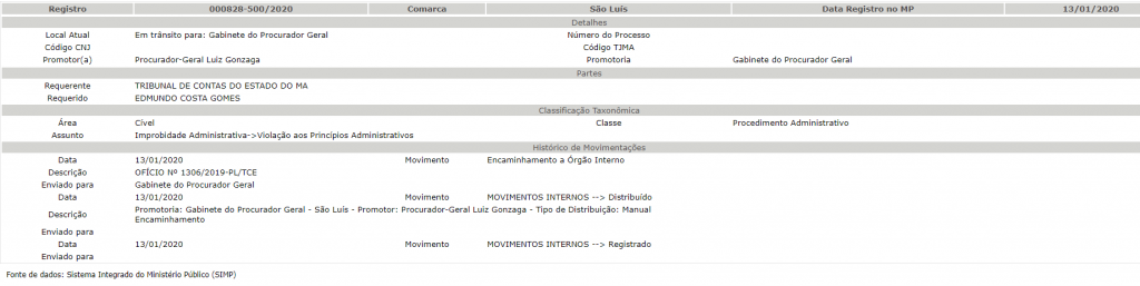 Está no gabinete do procurador-geral de Justiça, Luiz Gonzaga, o processo contra o ex-secretário de Saúde do governo Jackson Lago, Edmundo Costa Gomes.