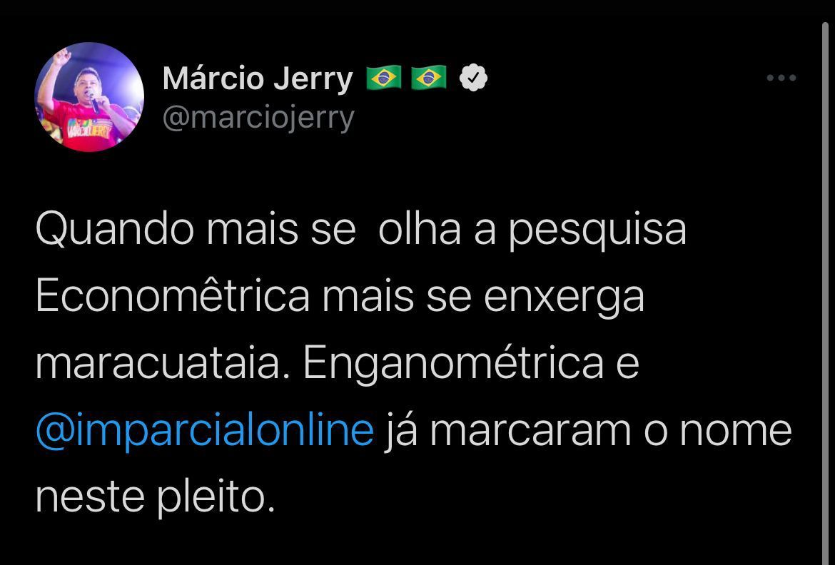 Em outra publicação, Márcio Jerry afirmou que o Instituto estava fazendo “maracutaia” com os números e o classificou como “Enganométrica”.
