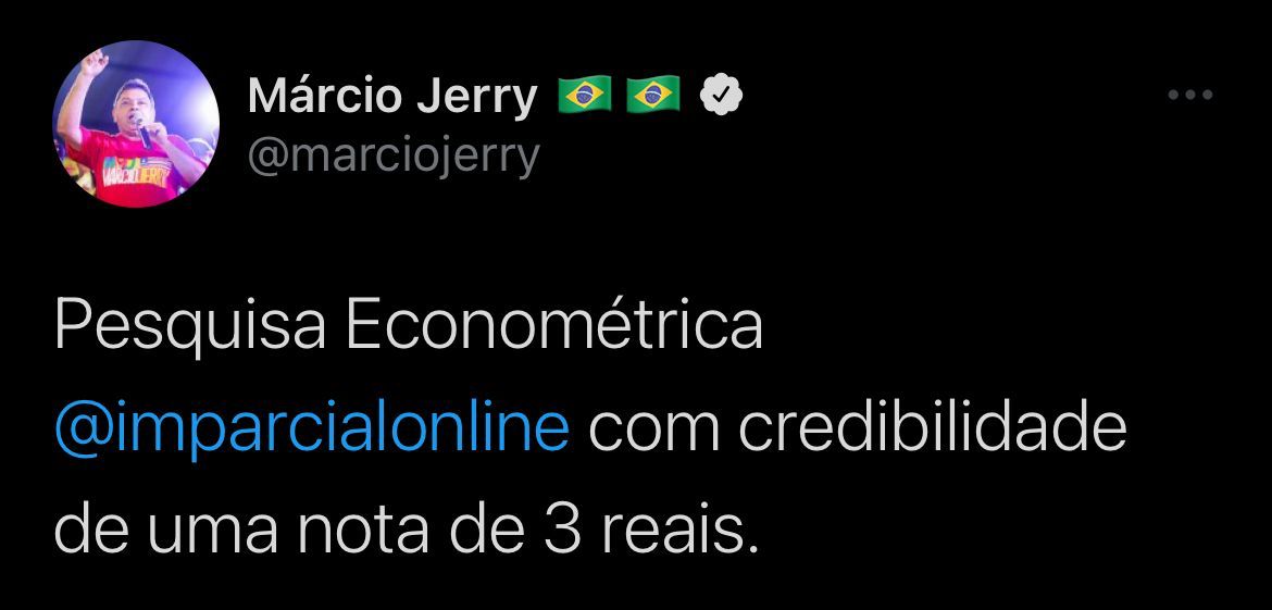 E finalizou: “Pesquisa Econométrica e O Imparcial com credibilidade de uma nota de 3 reais”.