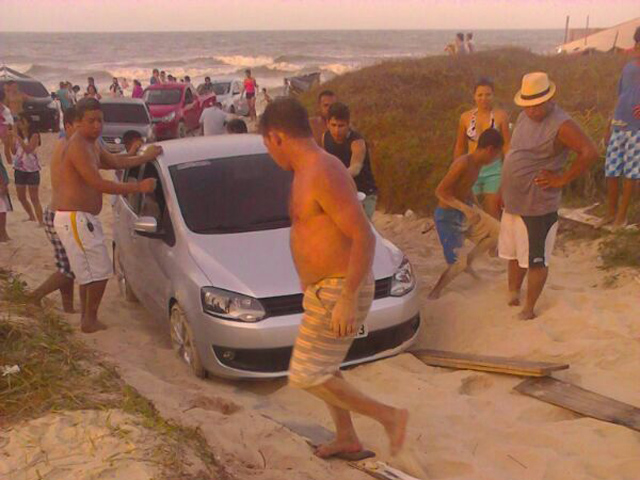 Segundo informações, os proprietários dos veículos não atentaram para a subida da maré e tiveram seus veículos ‘engolidos’ pela água.