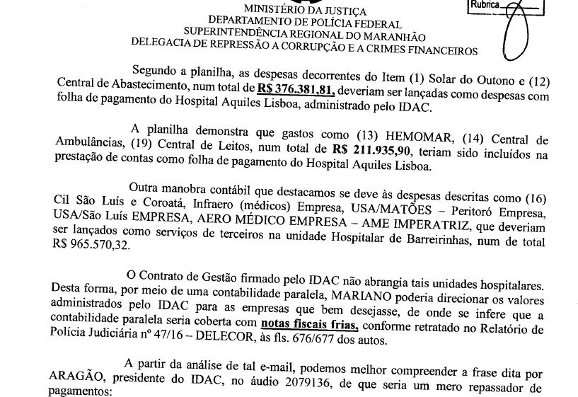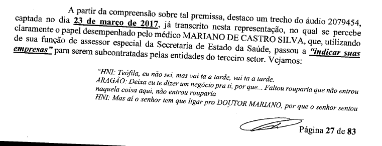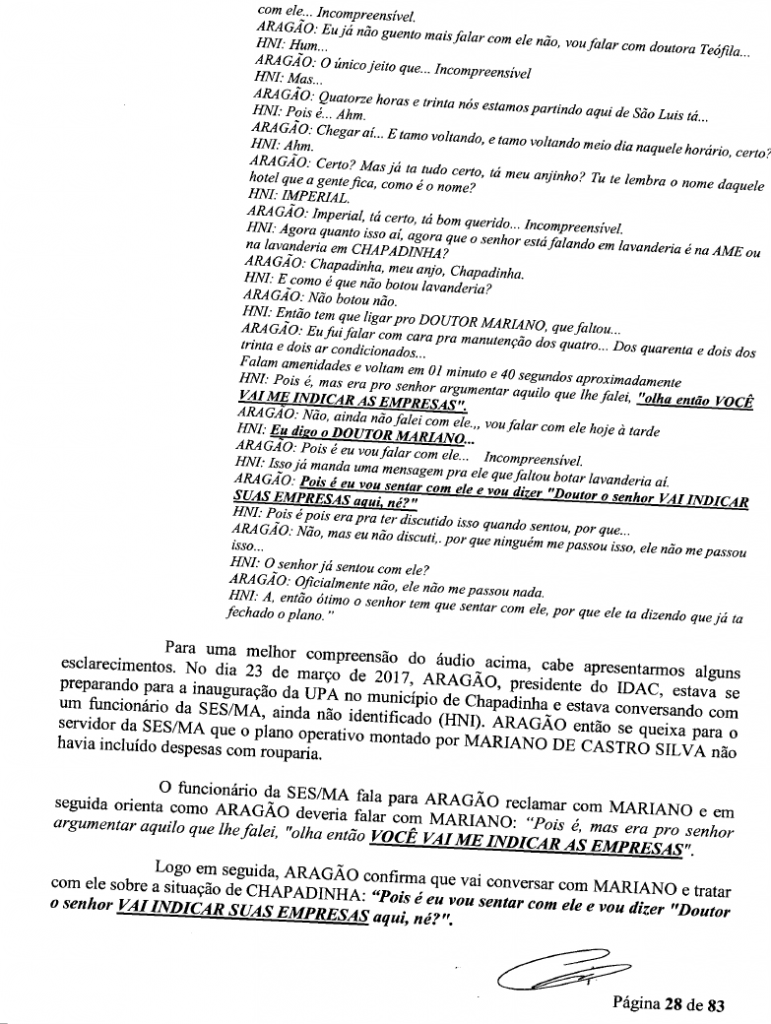 Em uma conversa interceptada pela PF, o diretor do IDAC, Antônio Aragão é orientado a tratar com o medico sobre as indicações de empresas. O diretor do Idac confirma que vai tratar do assunto com Mariano: “Pois é, eu vou sentar com ele e vou dizer ‘Doutor, o senhor vai me indicar suas empresas aqui né?”.