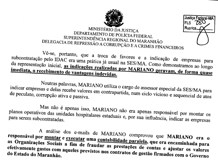 Apontado pela Polícia Federal como o operador do ‘esquemão na saúde’ do governo Flávio Dino (PCdoB), Mariano usou do cargo não somente para beneficio próprio, mas também para indicar varias empresas – a pedido de políticos – que foram subcontratadas pelas Organizações Sociais.