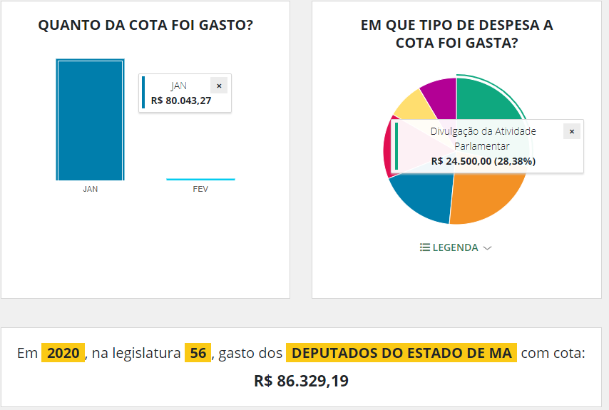 Ao todo, os deputados maranhenses utilizaram em janeiro R$ 86.329,19 mil do dinheiro público para executar serviços em benefício dos próprios mandatos.
