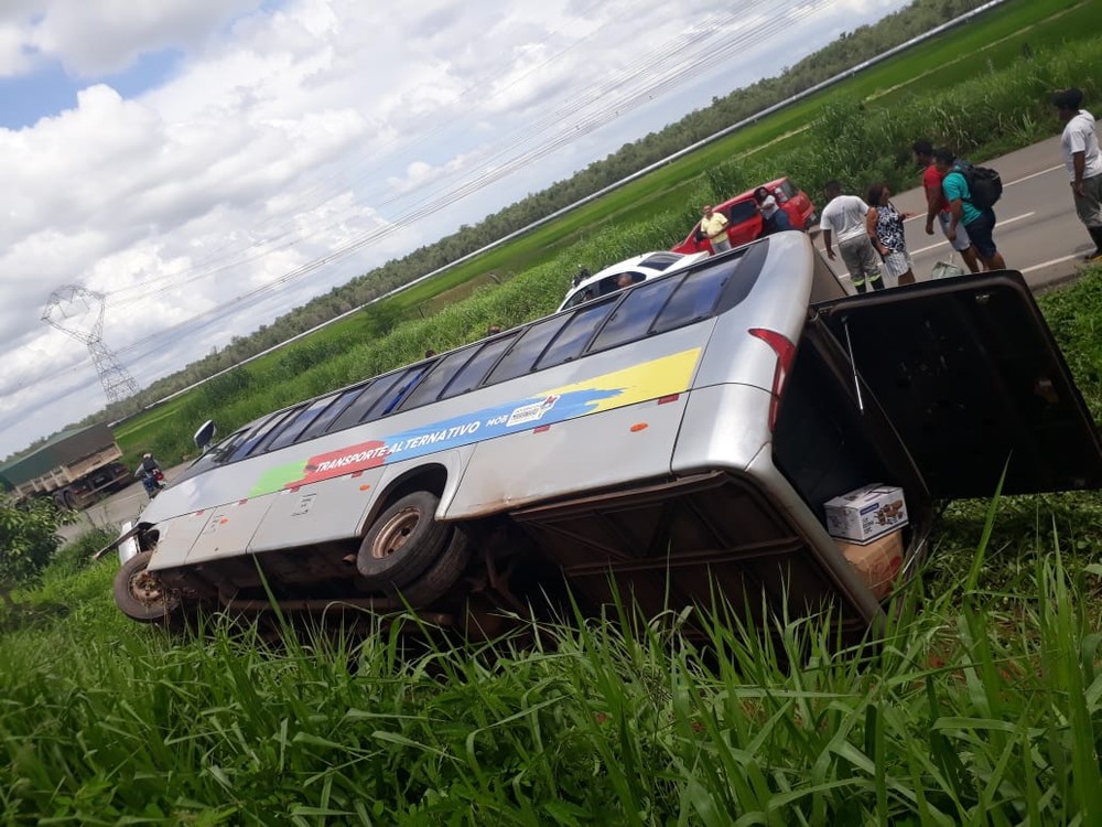 Segundo a Polícia Rodoviária Federal (PRF), o acidente tipo saída de pista seguida de tombamento aconteceu no km 38 da BR-135, em Bacabeira, e no momento 13 pessoas estavam no veículo, mas ninguém se feriu.