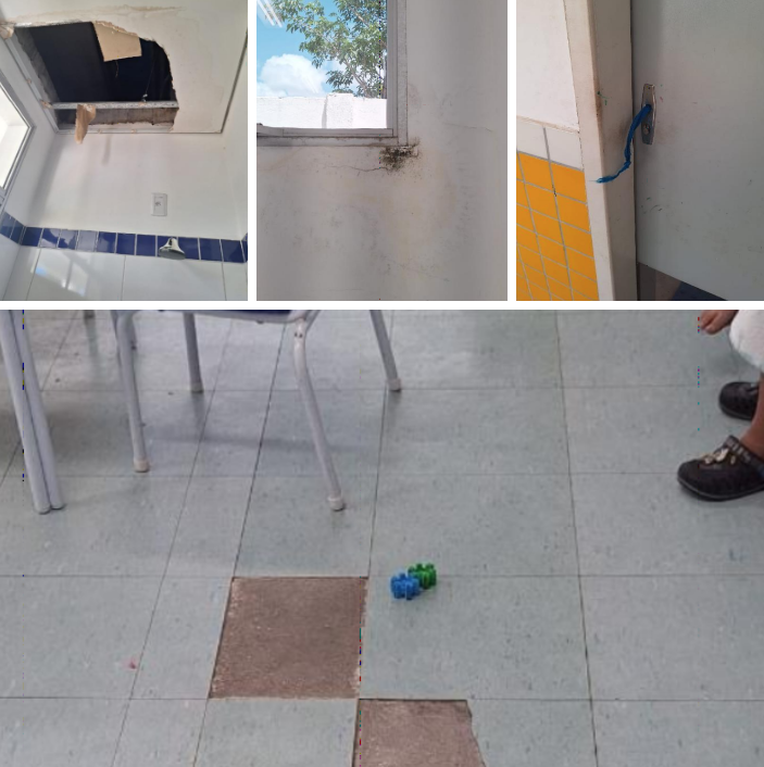 Também foram encontrados vasos sanitários e chuveiros danificados, necessidade de pintura e ausência de espaços destinados para os professores e de bibliotecas. Além disso, há espaços subutilizados, como as destinadas a atendimentos de saúde.