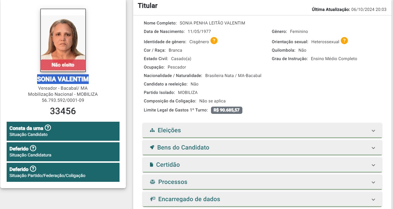 Segundo informações publicadas no Diário Eletrônico do MP, a candidata Sônia Valentim, que estava concorrendo ao cargo de vereadora não obteve votação, ou seja, teve o resultado zerado, o que pode caracterizar fraude à cota de gênero.