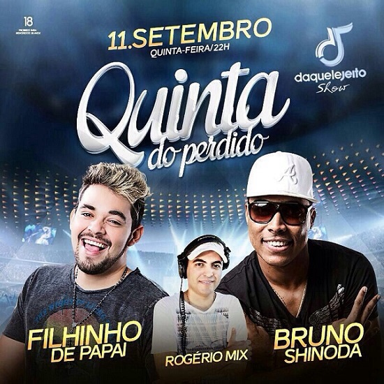 Bruno Shinoda e a banda Filinho de Papai prometem agitar s noite desta quinta-feira (11), na casa de eventos Daquele Jeito.