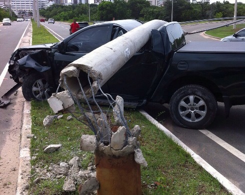 Uma caminhonete perdeu o controle e colidiu com um poste na Via Expressa, em São Luís (MA). O condutor do veículo, Nonato Belém, desviou de um carro, subindo no canteiro e derrubou o poste. Felizmente, Não teve vítimas.