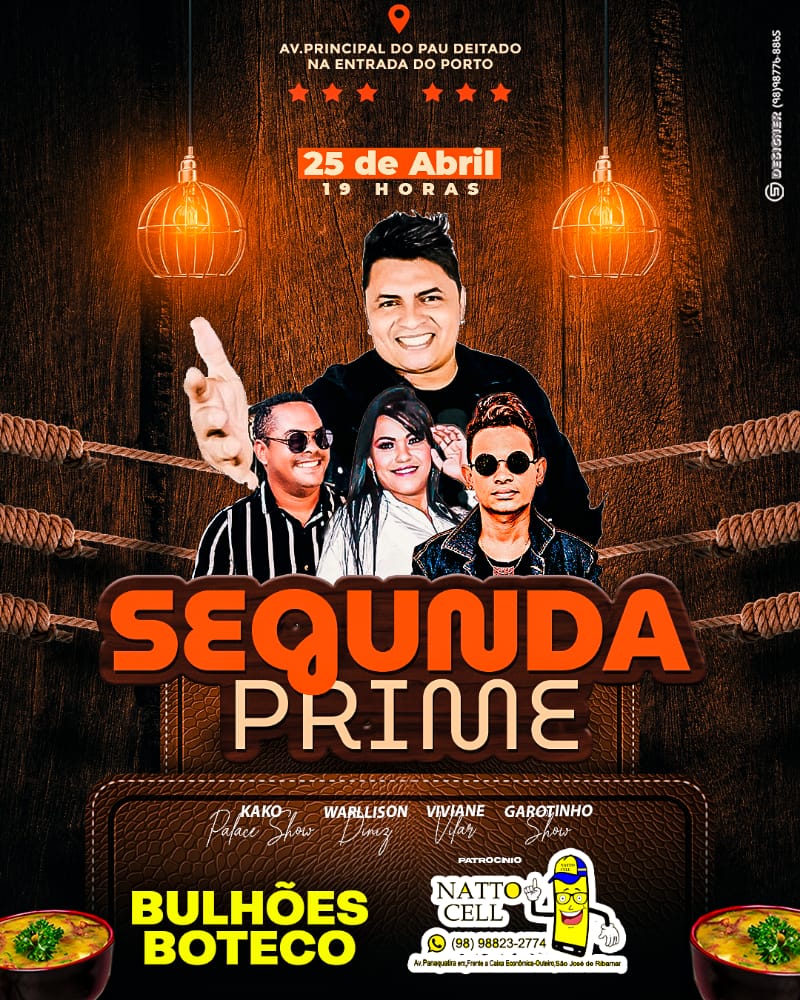Segunda Prime é mais um evento no Bulhões boteco, com as participações dos cantores Kako da palece show, Warllison Diniz, Viviane Vilar e Garotinho Show.