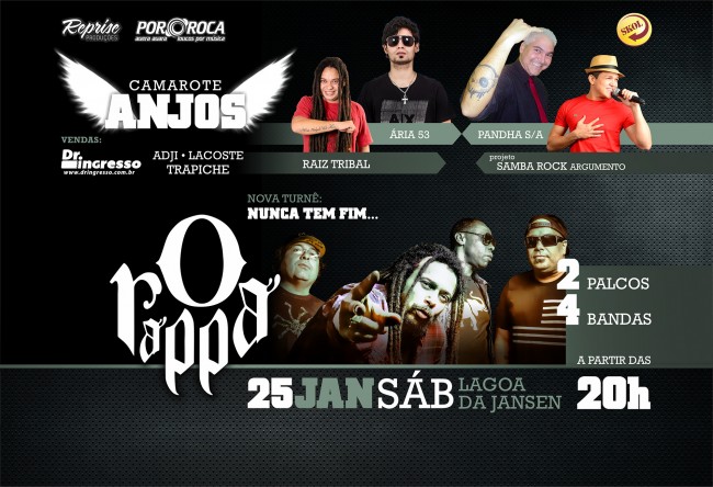 O Rappa volta a São Luís e promete muita agitação neste sábado 21/01/2014 | PÁGINA PRINCIPAL, Entretenimento O Rappa, banda brasileira conhecida por suas letras de forte impacto social, volta a São Luís com o show do álbum “Nunca Tem Fim”. O grupo se apresenta neste sábado, dia 25, e promete muita agitação ao público maranhense. O show será imperdível. Navegação de Post Sejap se manisfesta sobre morte de preso em PedrinhasEdilázio articula parceria entre Governo e Prefeitura de Santo Amaro do Maranhão