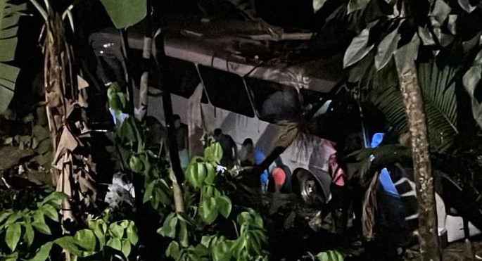 Um ônibus com mais de 40 passageiros caiu em uma ribanceira após perder o freio em uma ladeira na BR-402, no último sábado (7). O caso aconteceu perto do povoado Ruy Vaz, na região do município de Axixá.