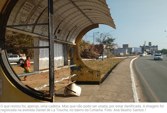 lotados, com péssimas estruturas e, para completar, assaltos constates. Mas, antes de embarcar, o passageiro tem que lidar com outro problema: as paradas de ônibus danificadas.