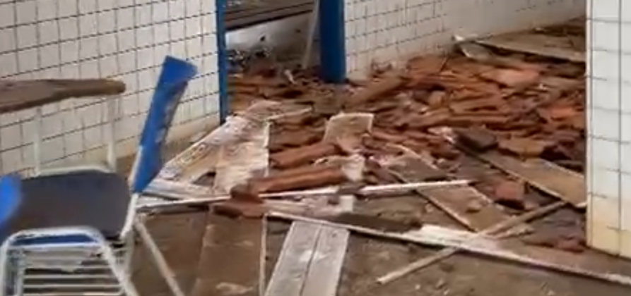 Vídeos que circulam nas redes sociais mostram um cenário alarmante, telhado cedido, forro destruído, ventiladores no chão e uma grande quantidade de entulhos espalhados pelo corredor principal da unidade. As imagens causaram revolta e indignação na população.