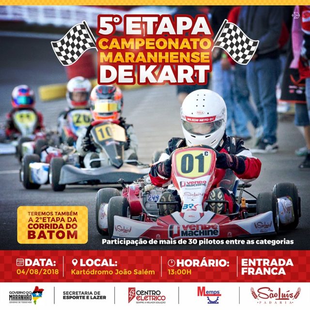 Participe da 5ª Etapa do Campeonato Maranhense de Kart 31/07/201831/07/2018 | PÁGINA PRINCIPAL, Notícias Assista de perto a 5ª etapa do campeonato no Kartódromo João Salem, em São Luís, no dia O4 de agosto. Várias modalidades. Navegação de Post Após articulação de Astro de Ogum, vicinais são recuperadas na zona rural de São LuísFábio Macedo participa de encontros políticos em Buriti e Porto Franco