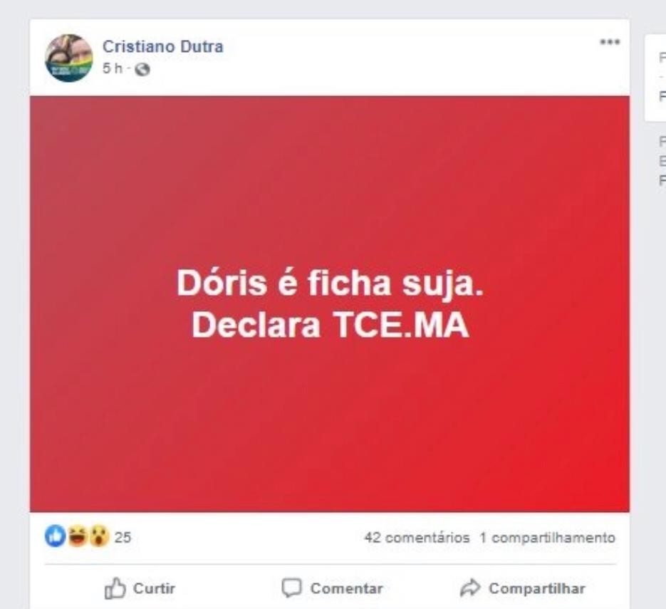 A representação alega que ele usou das redes sociais para fazer propaganda negativa contra Dóris Rios. Em uma das postagens o eleitor diz que Dóris é ficha suja, segundo o TCE.