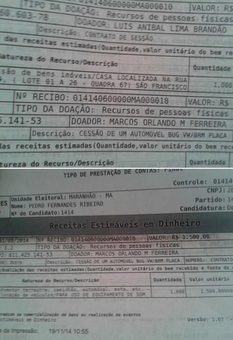 Sobre a matéria do site “Congresso em Foco”, Intitulada “Quem recebeu da caixinha eleitoral do Congresso” e replicada por outros sites e blogs, o deputado federal Pedro Fernandes (PTB-MA) responde: Não houve doação em espécie, como é citado, no valor de R$ 1.500,00, mas sim a cessão de um bugre equipado com som por 3 meses, conforme documento em anexo. E esse valor foi estimado na prestação de contas de campanha.
