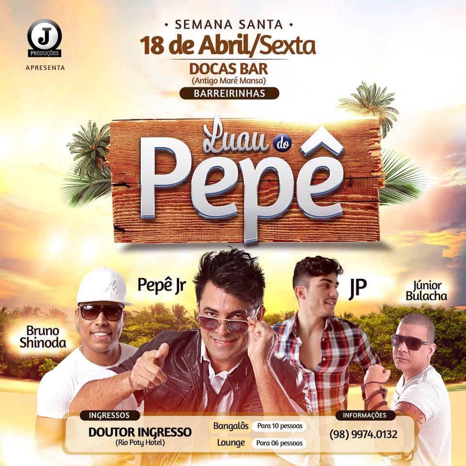 O ídolo maranhense Pepê Junior que emplacou o hit do Carnaval 2014 com Ipod, Identro se apresenta em Barreirinhas nesta sexta no Docas Bar (antigo Maré Mansa).