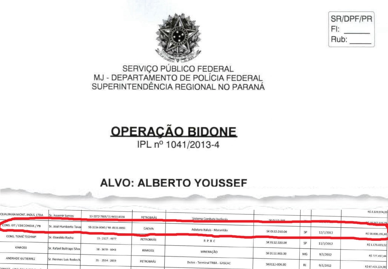 Ainda de acordo com o documento, a empresa integrava o Consórcio EIT/Edeconsil/PB que estava concorrendo a um processo licitatório para realizar obras da Caema, na adutora Italuís. A proposta do doleiro Youssef foi encaminhada no 12 de janeiro de 2012, e o Consórcio ganhou o contrato no dia 24 de janeiro do mesmo ano.