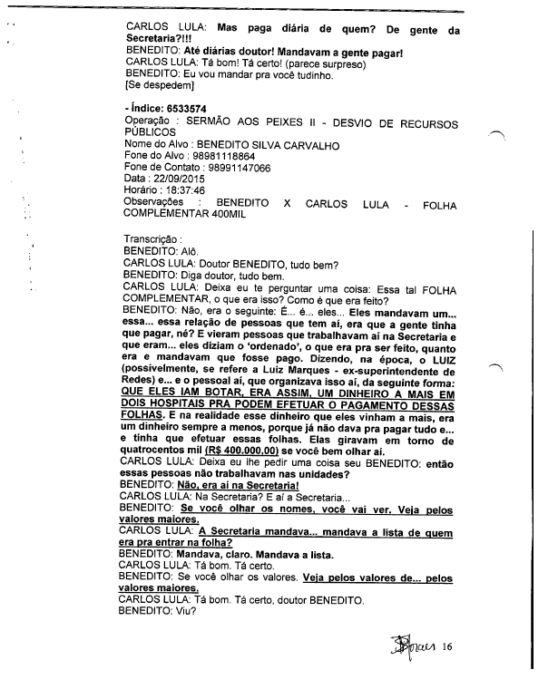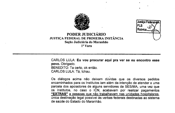 Trechos do dialogo entre Lula e um dos donos de institutos mostra o auxiliar de Flávio Dino surpreso ao tomar conhecimento de como estava sendo realizado os procedimentos para pagamento e o acumulo de pessoas que recebiam, ou seja, uma ilicitude devidamente organizada.