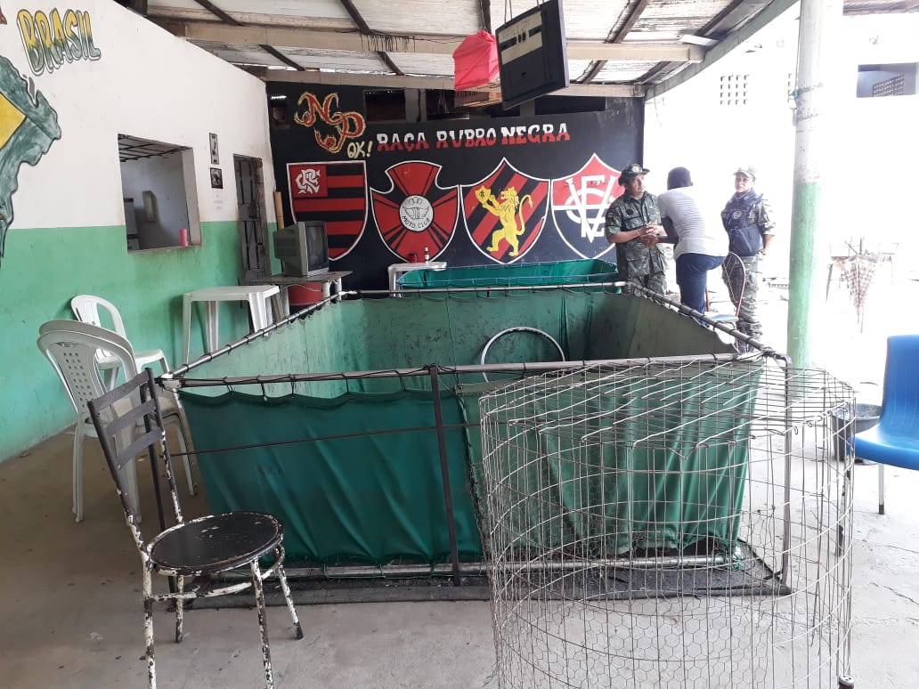 O Batalhão de Polícia Ambiental, através do GRUPO TÁTICO AMBIENTAL- GTAM, fechou uma rinha de galo na Maiobinha, em Paço do Lumiar.