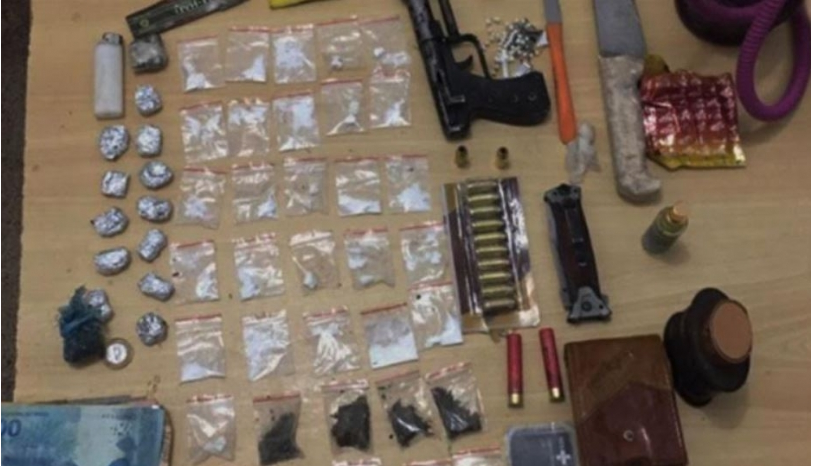 Os militares apreenderam, no local, vários itens ilegais, como uma arma de fogo de fabricação caseira municiada com um cartucho de calibre ponto 36; munição de calibre ponto 40, mais dois cartuchos de calibre ponto 36; duas armas brancas (faca e canivete); 27 sachês contendo cocaína; 14 sachês com maconha prensada e 10 sachês com maconha convencional, além de R$ 855 em espécie.