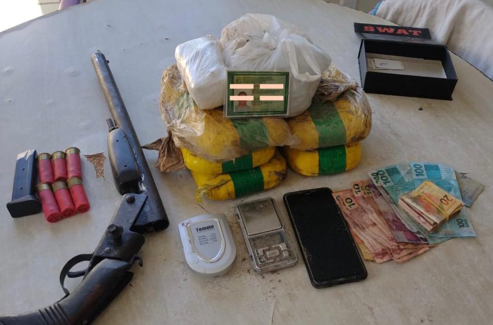 No local foi apreendido uma arma de fogo calibre 12, municões, grande quantidade de entorpecentes (semelhante a Crack, cocaína), entre outros objetos, a açao da Inteligéncia da Polícia Militar totaliza um prejuízo para o crime de aproximadamente 150.000,00 (cento e cinquenta mil reais).