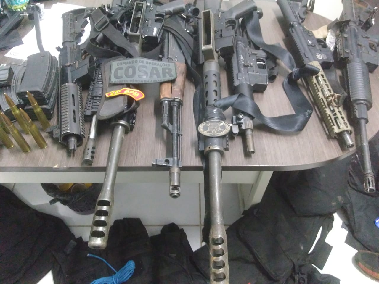 Durante a prisão, a polícia apreendeu armas e munições que estavam em poder dos criminosos, além de malotes com cédulas que os policiais acreditam pertencer à agência do Bando do Brasil de Bacabal. Não foi divulgado o valor recuperado. Foram apreendidas 11 fuzis, duas metralhadoras calibre .50 (artilharia anti-aérea), duas pistolas e coletes. Os policiais acreditam que este arsenal é alugado de outros bandidos.