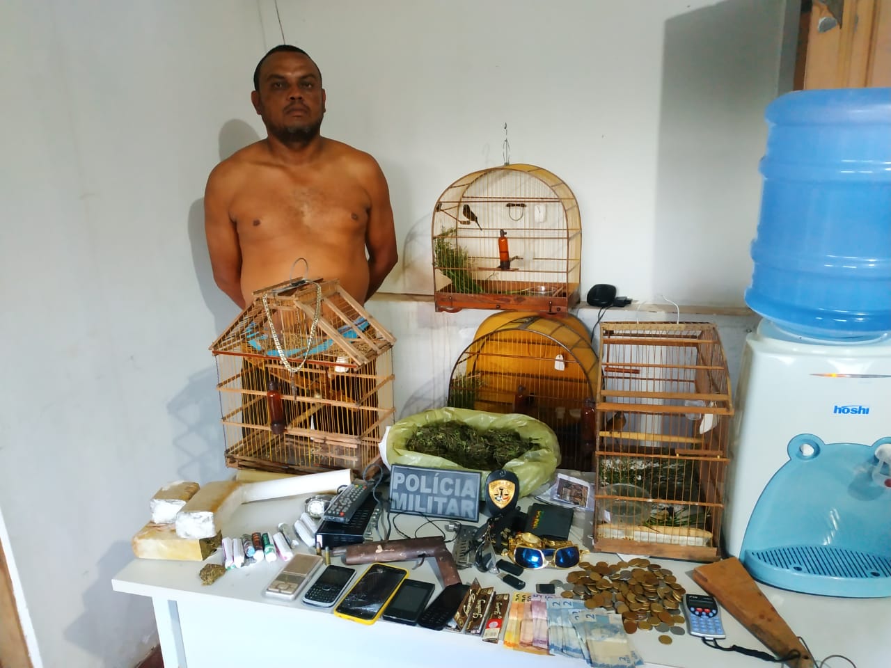 Na casa de Ary Ribeiro a polícia apreendeu 2 kg de maconha, dinheiro, balança de precisão, armas, munições e vários objetos roubados. Também foram apreendidos quatro pássaros silvestres, que eram mantidos em gaiolas.