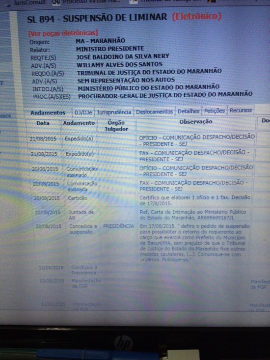 O presidente do Superior Tribunal Federal, Ricardo Lewandowski retornou ao cargo da prefeitura de Bacuri. Afastado do cargo por improbidade administrava, o prefeito da cidade de Bacuri, José Baldoino da Silva Nery (PP), retornou ao cargo conforme decisão favorável da justiça.